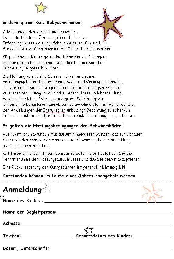 Für eine Kursreservierung setzen Sie sich bitte mit Tanja Bernhardt telefonisch (06692-919824) oder über die folgende e-Mail-Adresse in Verbindung: bernhardt_tanja@yahoo.de Es gelten die Haftungsbedingungen des Europabades.